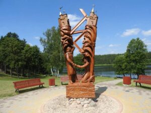 Rzeźba Igno i Liny nad jeziorem Paplavinys