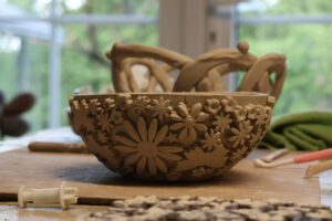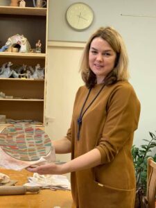 Pracownia ta stała się swoistym centrum twórczym, w którym splatają się tradycja i nowoczesność. Jak mówi ceramiczka: „Od dzieciństwa ciągnęło mnie do różnych robótek ręcznych. Ale ceramikę odkryłam znacznie później. Pracowałam jako nauczycielka geografii w Nowych Daugieliszkach”.